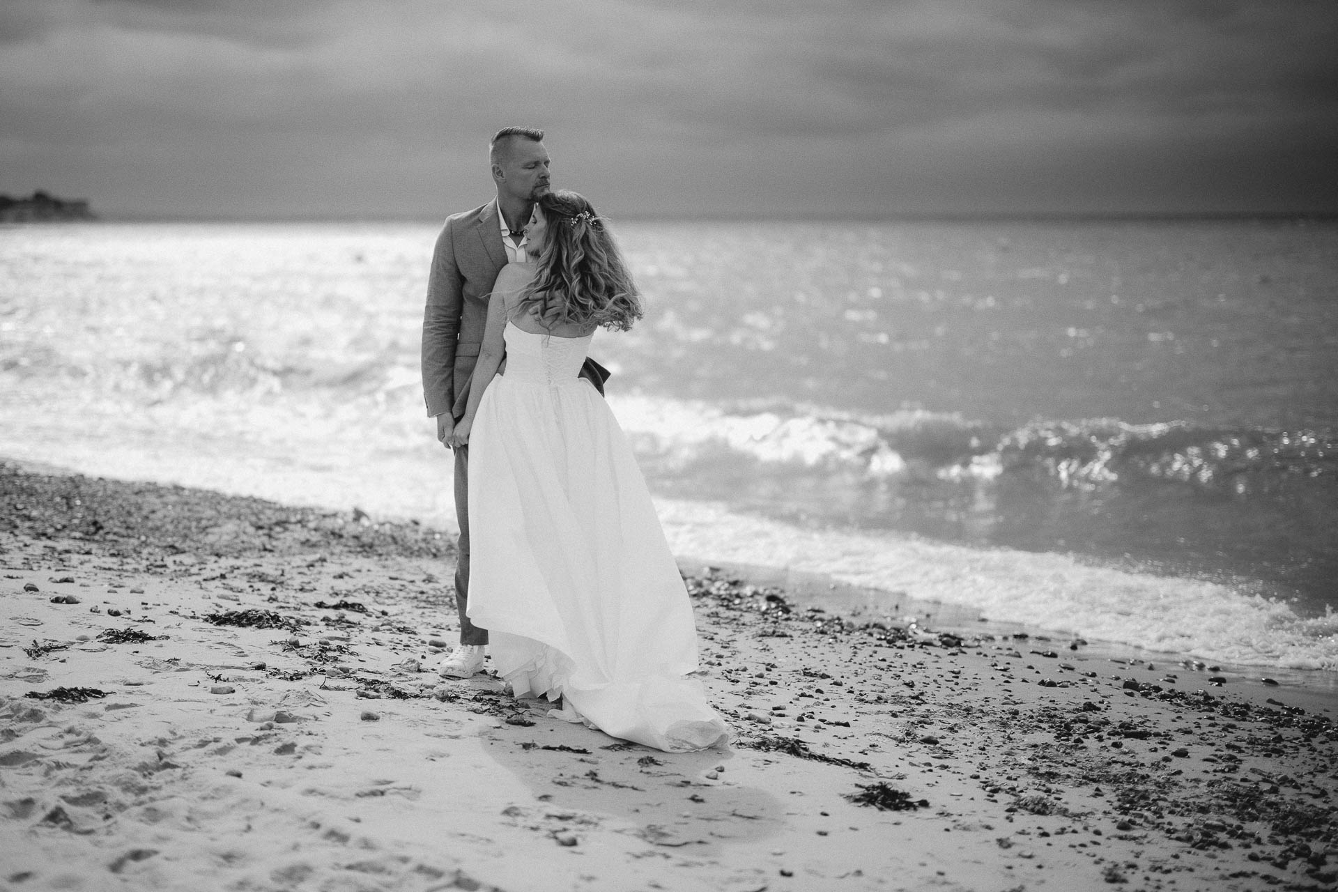 Nach der Trauung hatten wir ein traumhaftes Brautpaarshooting am Wasser. Wind, Wasser, Wolken – alles spielte perfekt zusammen. Genau solche Momente sind es, die zeigen, dass echte Emotionen wichtiger sind als jede Inszenierung.
